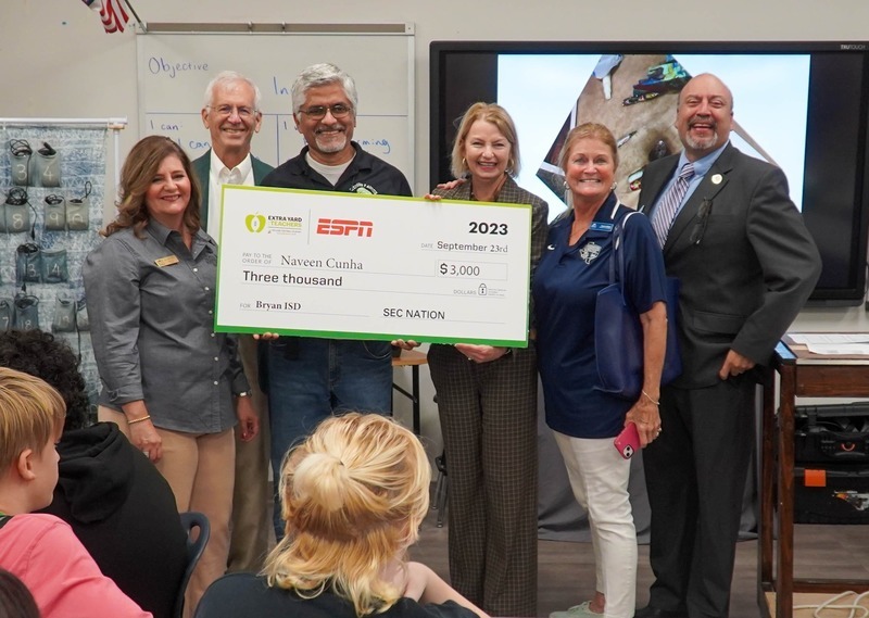 It was a special day in Bryan ISD as Super Bowl Champion and SEC Nation analyst Roman Harper stopped by SFA Middle School in Bryan ISD to surprise Naveen Cunha with a check for $3,000! The special event happened on Friday, September 22, 2023.
