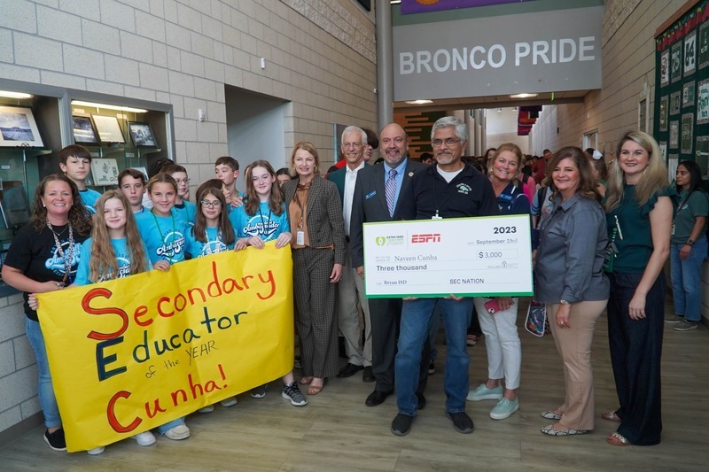 SEC Nation learned of Mr. Cunha's recent recognition as one of the Texas Association of School Administrators' best secondary teachers in Texas and chose to feature him on the program. He is one of three finalists for Secondary Teacher of the Year.